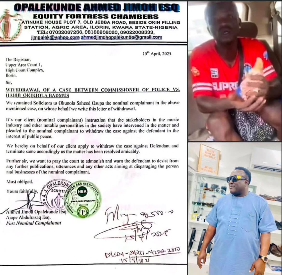 The management of King (Dr.) Saheed Osupa wishes to inform the general public that the legal action previously instituted against Habeeb Okikiola, popularly known as Portable, has been formally withdrawn on the instruction of Osupa himself.