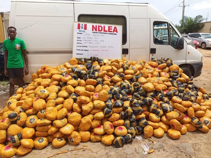 In Lagos, 1.1 tonnes of cannabis were confiscated from a delivery van in Surulere, with the driver, Ismail Abdullahi, taken into custody. Meanwhile, in Kaduna, NDLEA stormed a drug hideout in Zaria on April 18, recovering 31,950 pills of tramadol (225mg) and diazepam from suspect Ike Ani, 30.