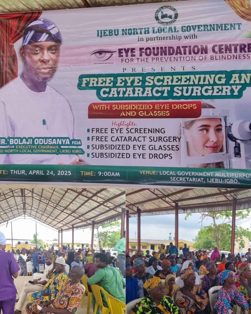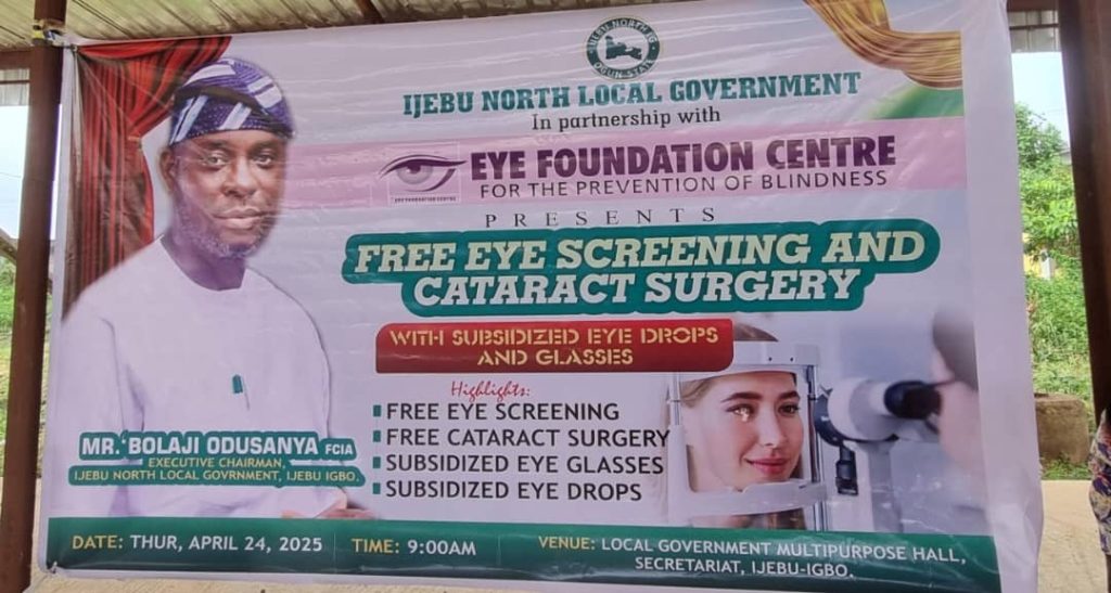 The Executive Chairman of Ijebu North Local Government, Mr Bolaji Odusanya on Monday flagged off a 1-Day Free Cataract surgery, free glasses, Free eye test with subsidized eyes drop for the residents of Ijebu North.