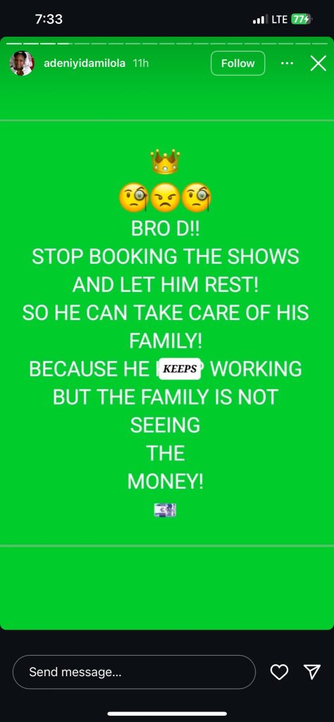 On April 28, 2025, media personality @Akanbitheduke took to Instagram to amplify Damilola’s pleas, explaining in a lengthy post that he had personally attempted to contact the 78-year-old music icon before a friend reached out to him on the daughter’s behalf.