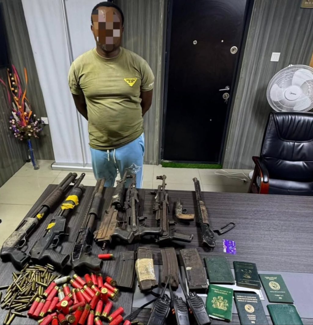 Two (2) AK-47 rifles, one (1) K2 assault rifle, one (1) Red Ryder rifle, three (3) pump action rifles, two (2) locally made single-barrel pistols, five (5) magazines, fifty-seven (57) live cartridges, seventy (70) 5.56 live ammunition, twenty-seven (27) 9mm ammunition, one (1) expended 5.56 ammunition, one (1) dagger, three (3) walkie-talkies, nine (9) international passports belonging to different individuals,” Hundeyin stated.