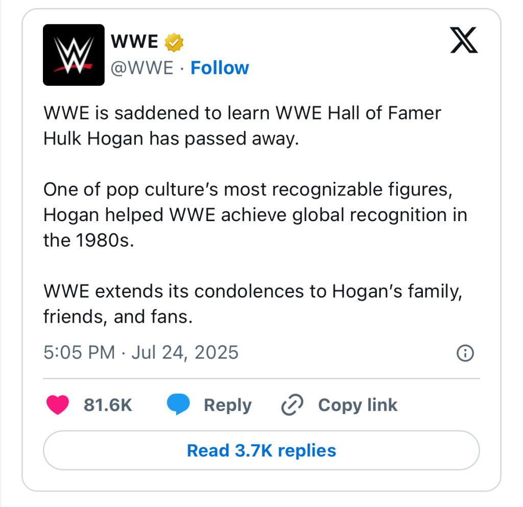 Terry “Hulk Hogan” Bollea died on Thursday, WWE announced. He was 71 years old.