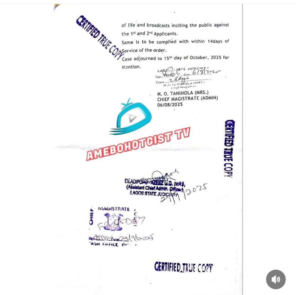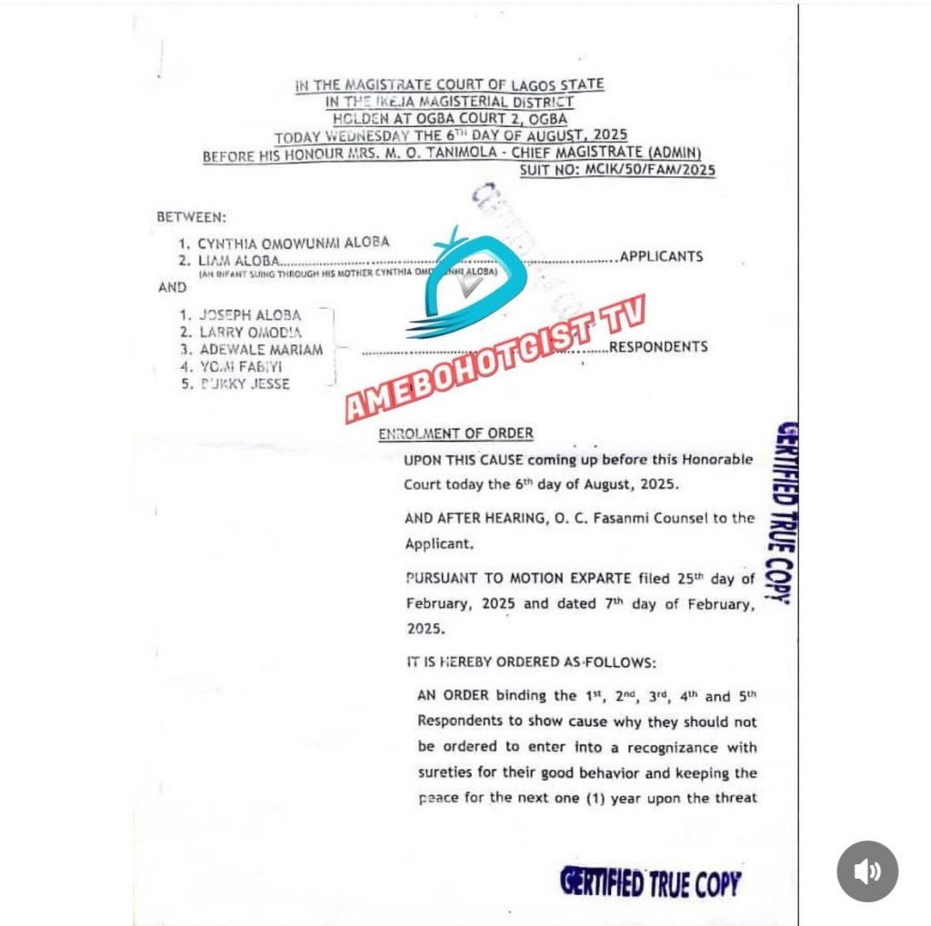 In a ruling delivered on Wednesday, August 6, 2025, Chief Magistrate M. O. Tanimola ordered the respondents to desist from making any public statements, threats, or incitements against Cynthia Omowunmi Aloba (widow of Mohbad) and her son, Liam Aloba.