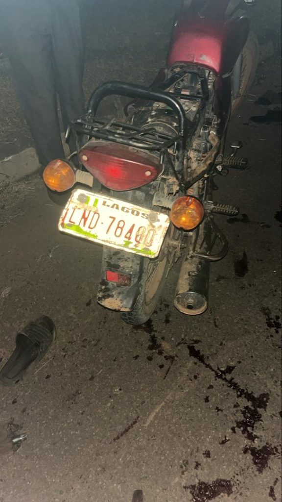 A fatal accident occurred tonight on Obada Bridge in Ijebu-Igbo when an overspeeding motorcycle collided with a faulty parked vehicle loaded with goods. The vehicle was reportedly parked on the bridge due to a tyre malfunction.