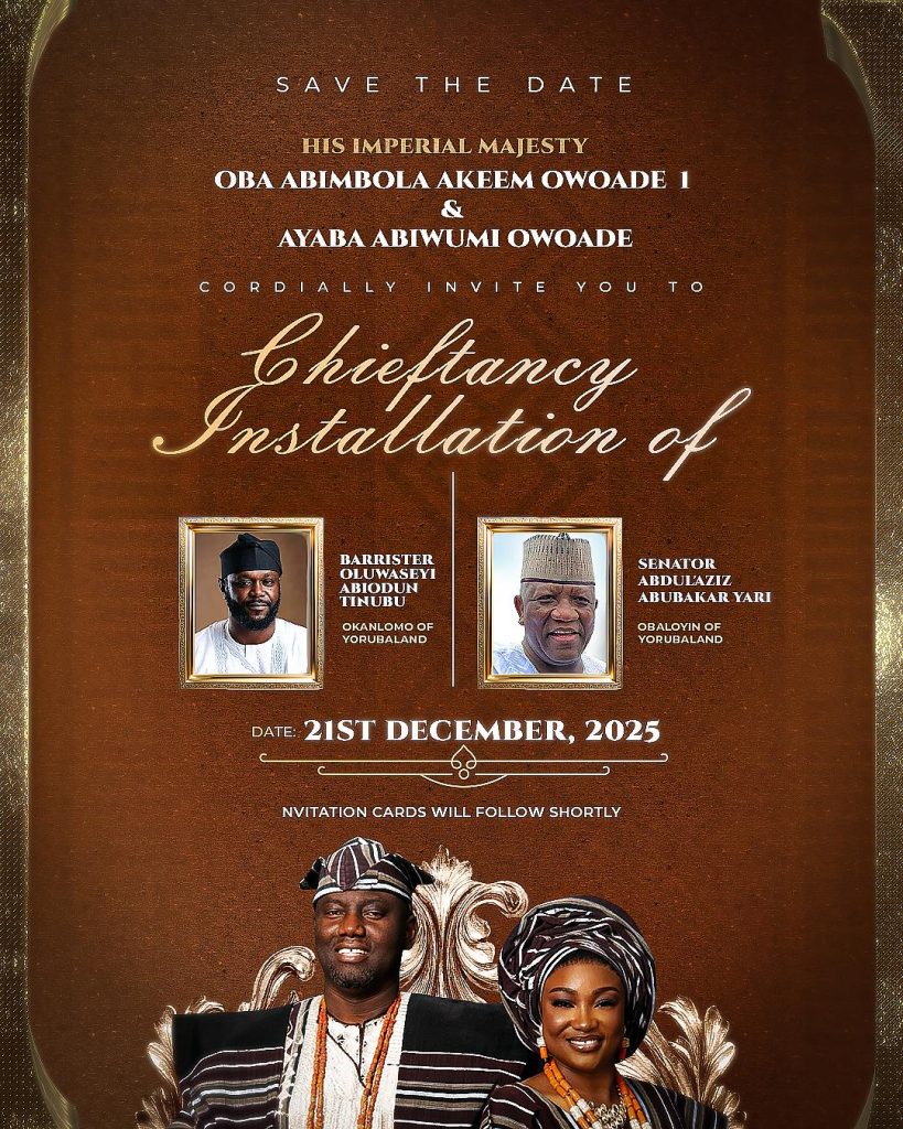The Alaafin of Oyo, Oba Abimbola Owoade, is set to install Seyi Tinubu, son of President Bola Ahmed Tinubu, as Okanlomo of Yorubaland.