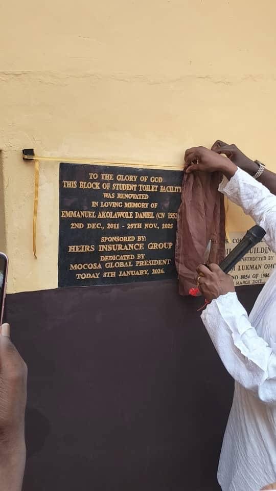 Molusi College recorded a significant milestone with the official dedication of a newly renovated block of ten (10) students’ toilet facilities, made possible through the combined efforts of the Molusi College Old Students’ Association (MOCOSA) Global, Heirs Insurance Group, and other supportive stakeholders.