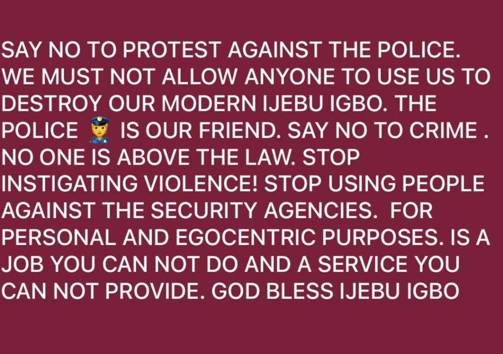 Ijebu-Igbo, Ogun State — Some concerned youths in Ijebu-Igbo have reacted strongly to reports of a planned protest allegedly targeting the police authorities in the town.